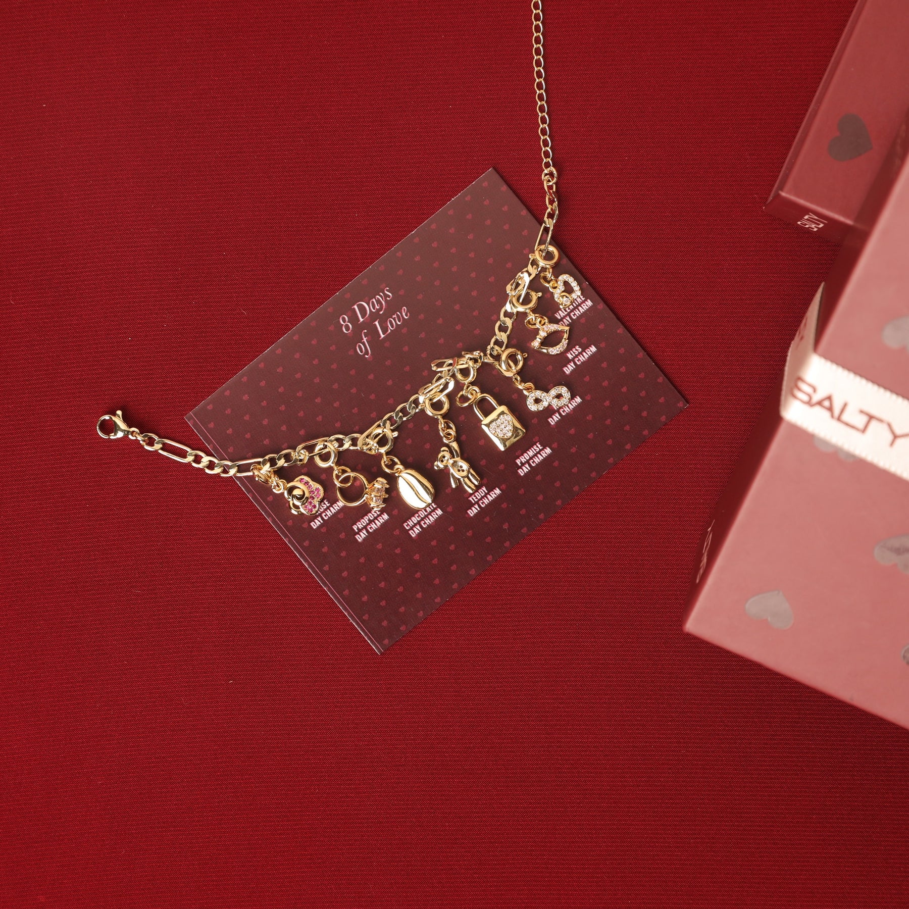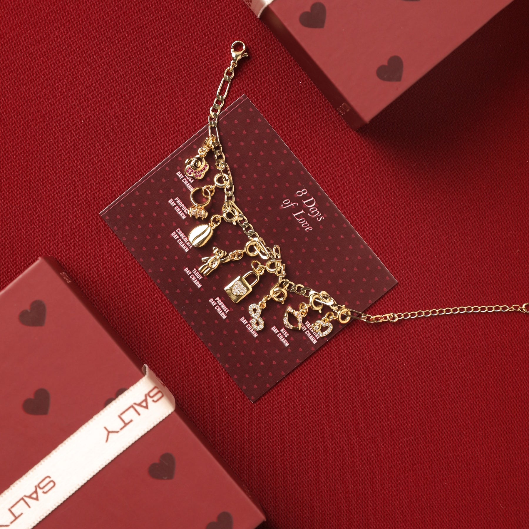 Celebrate love every day with the 8 Days of Love Bracelet, a timeless keepsake designed to make Valentine’s Day unforgettable. This exquisite bracelet features eight intricately crafted charms, each symbolizing a special element of romance.