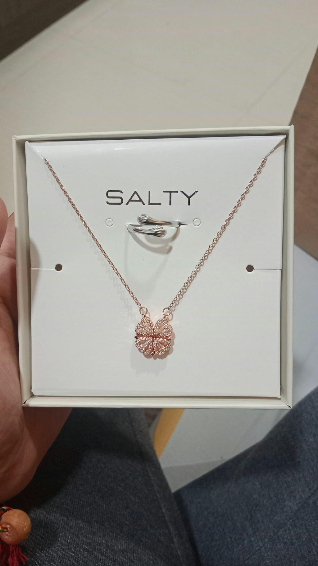 Box Includes- Hyacinth 4-pcs Zircon Heart Magnetic Clover Necklace - Rose Gold