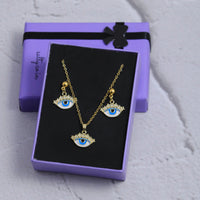 Eye of Protection Dark Blue Earrings and Necklace Set