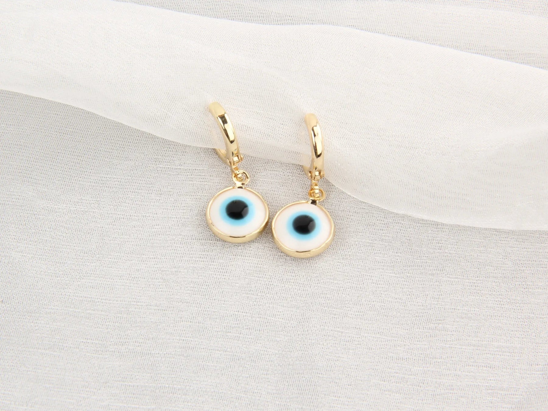 Up your game with Evil Eyes Gold Brim Wind Drop Earrings - Light Blue by Salty. Designed for the modern woman