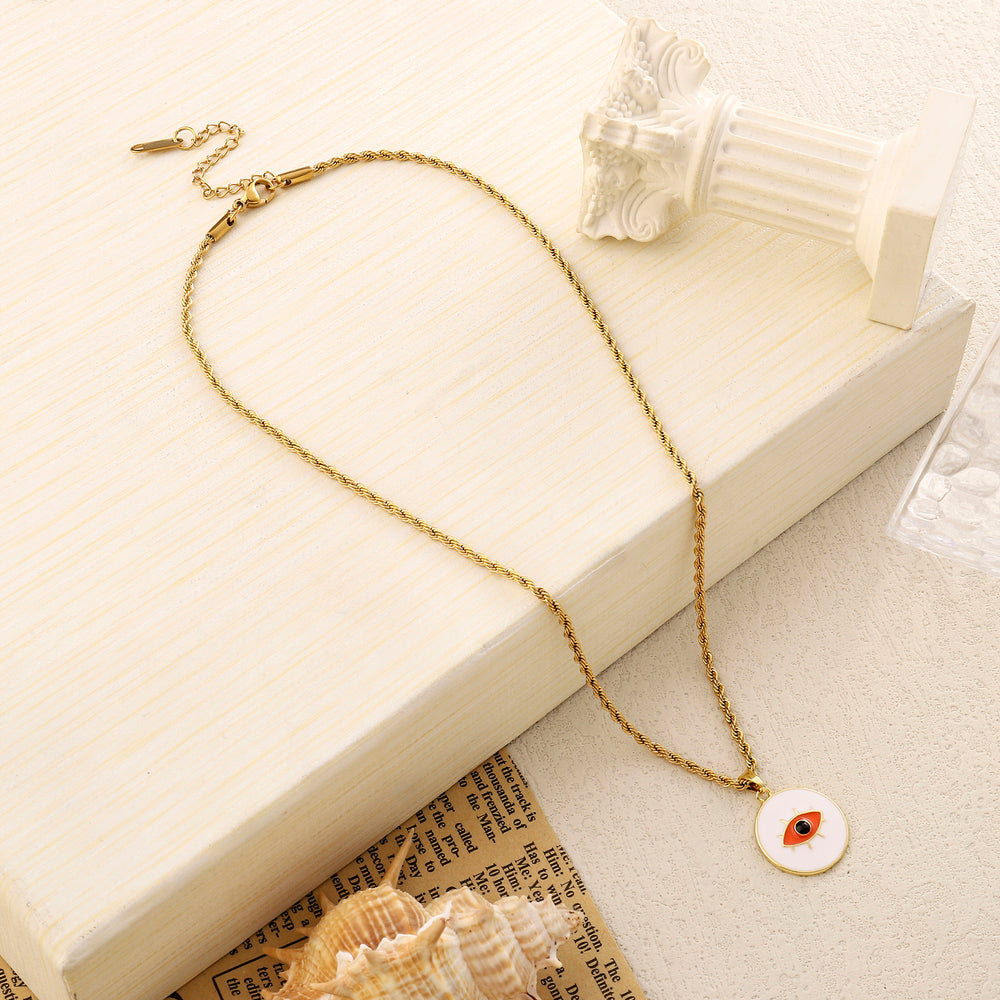 White & Red Evil Eye Gold Necklace