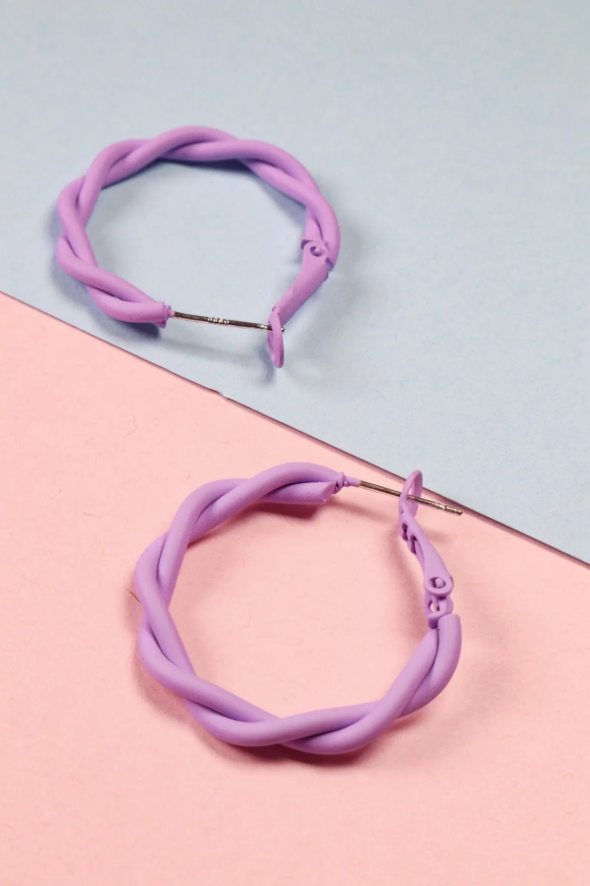 These twisted purple quirk hoops are an eye-catching statement piece. Whether you are going for a bold and dramatic look or a quirky and fun vibe, these hoops will do the trick. They are the perfect accessory for your everyday outfit.