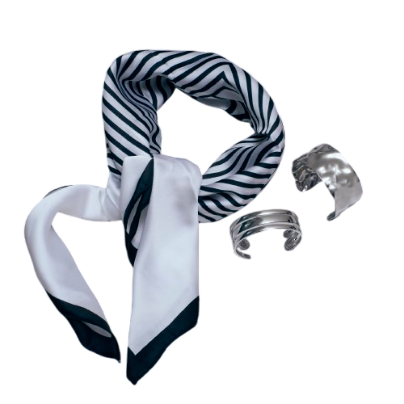 Unleash your inner trendsetter with the Street Style Boho Combo, a striking mix of urban edge and bohemian elegance. This versatile set features the chic White & Black Striped Luxury Silk Stole, the radiant Glimmering Grace Silver Cuff, and the bold Imperial Silver Cuff. Designed for layering and experimenting, this combo gives you endless styling possibilities—pair it with casual denim, flowy dresses, or party wear for a look that’s effortlessly stylish and full of character.Highlights:Includes White & Black Striped Luxury Silk Stole, Glimmering Grace Silver Cuff, & Imperial Silver Cuff