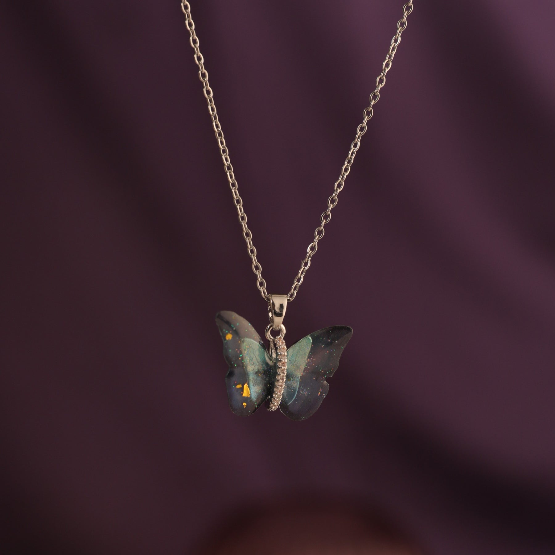 This one of a kind necklace is the perfect piece to add to your collection. What a great way to show off your personality with a necklace that has been intricately designed with a variety of stunning blue crystals. A delicate blue butterfly pendant with a silver chain, this necklace is the perfect accessory for any occasion. This lovely piece is perfect for anyone who loves a little bit of bling.