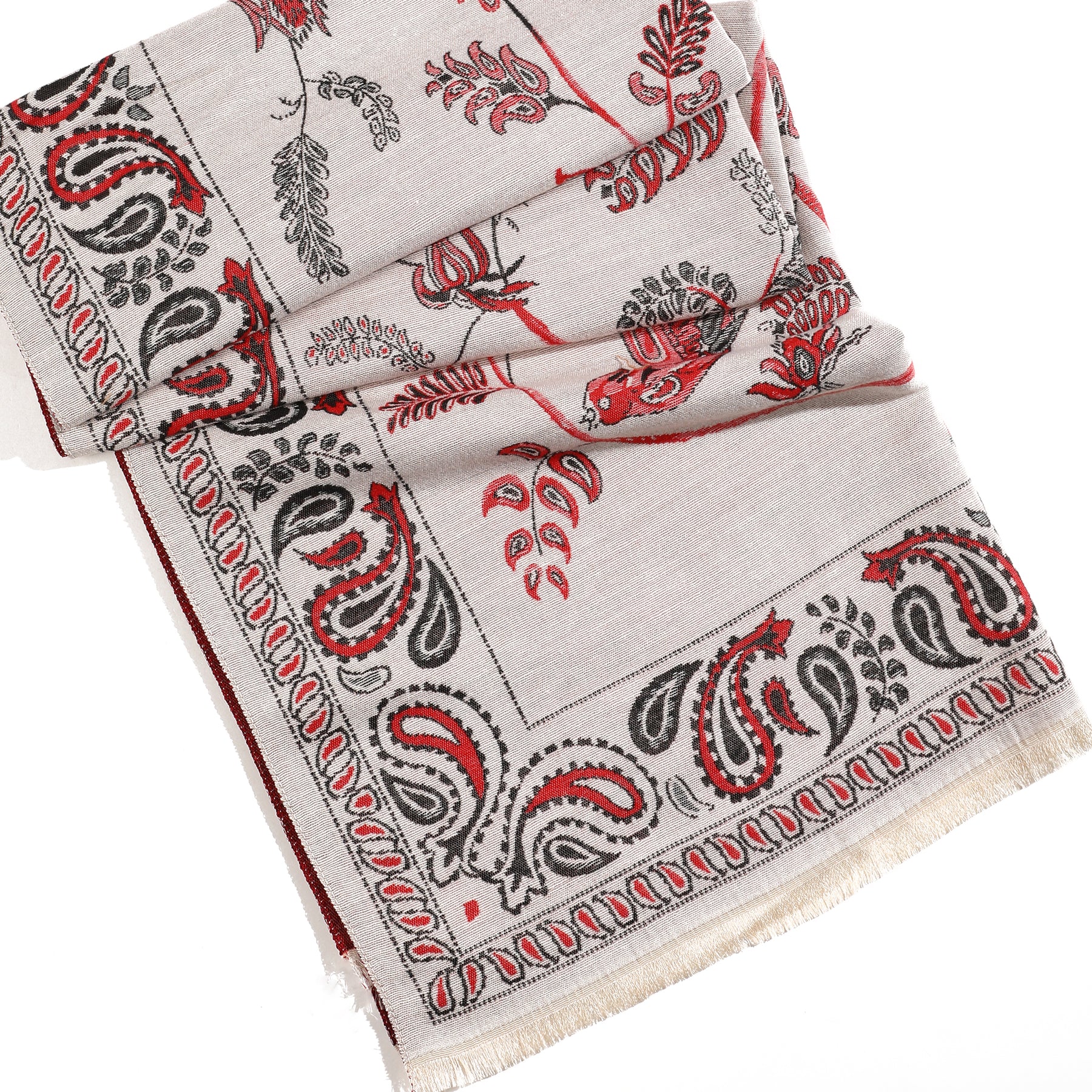 Wrap yourself in the timeless charm of the Desert Bloom Paisley Wrap. This luxurious Beige scarf blends soft warmth with understated sophistication, featuring intricate paisley and floral motifs that evoke a serene, bohemian elegance. Lightweight yet cozy, it drapes beautifully over any outfit — from casual knits to tailored coats — adding an effortless touch of grace and refinement. Whether you’re dressing up for brunch or winding down on a chilly evening, this scarf is your perfect statement of quiet luxury and everyday comfort.- ColorMaroon,Beige