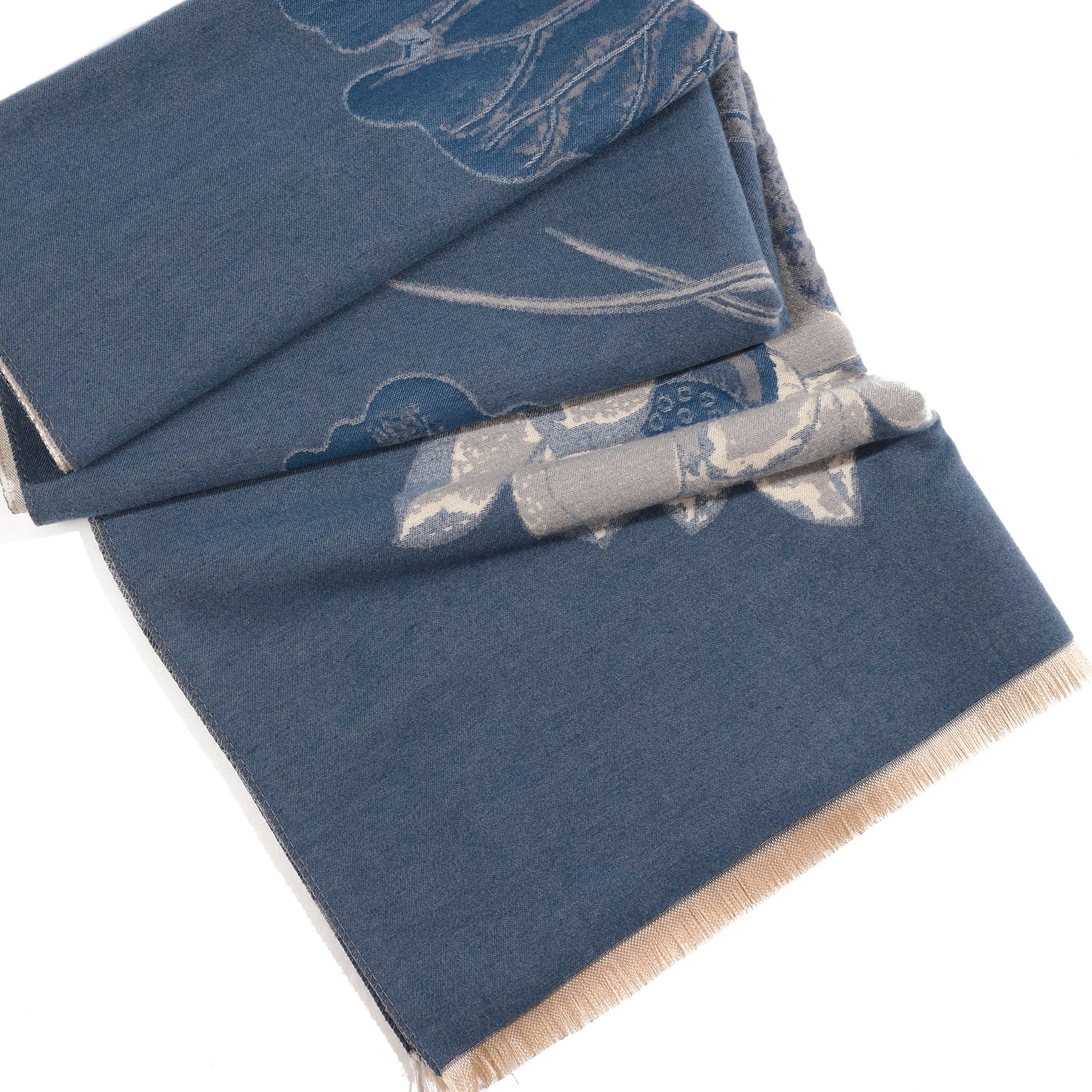 PetalWhisper Blush Floral Shawl - Blue