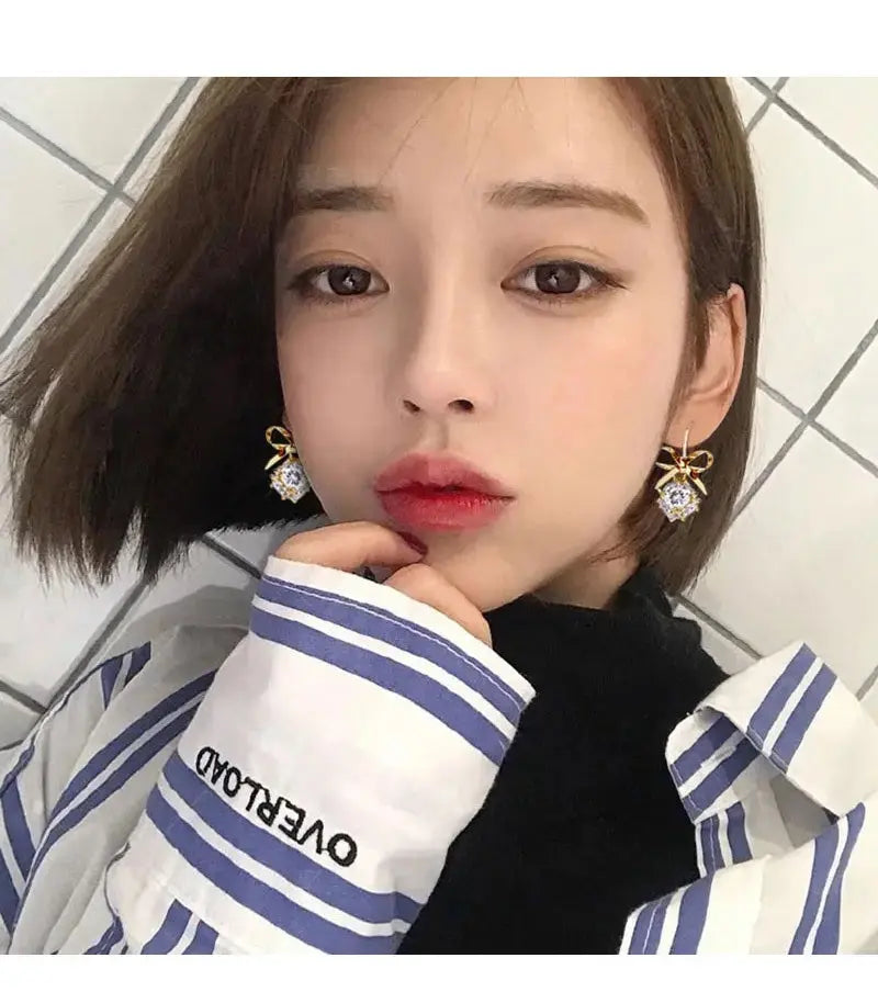 Bling Stone Bow Earrings - Gold