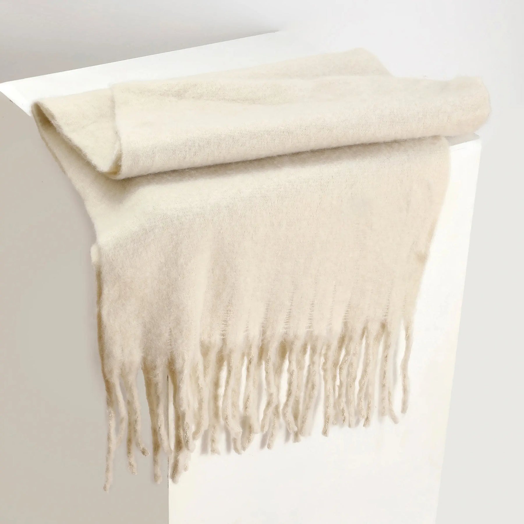 Wrap yourself in pure comfort with the CloudSoft Winter Scarf, designed for cozy warmth and timeless elegance. Featuring a plush, fuzzy texture in a soothing Beige shade, this scarf brings a calm, luxurious feel to any outfit. Made from 100% polyester, it is lightweight, soft to the touch, and easy to maintain while providing reliable warmth on chilly days. The long length and delicate fringe detailing allow for effortless styling—drape it casually or wrap it snugly for a polished winter look. Perfect for everyday wear, travel, or gifting, this scarf adds softness and sophistication to your seasonal wardrobe.- ColorBeige