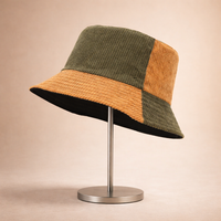 Earthtone Patchwork Corduroy Bucket Hat - Brown-Green