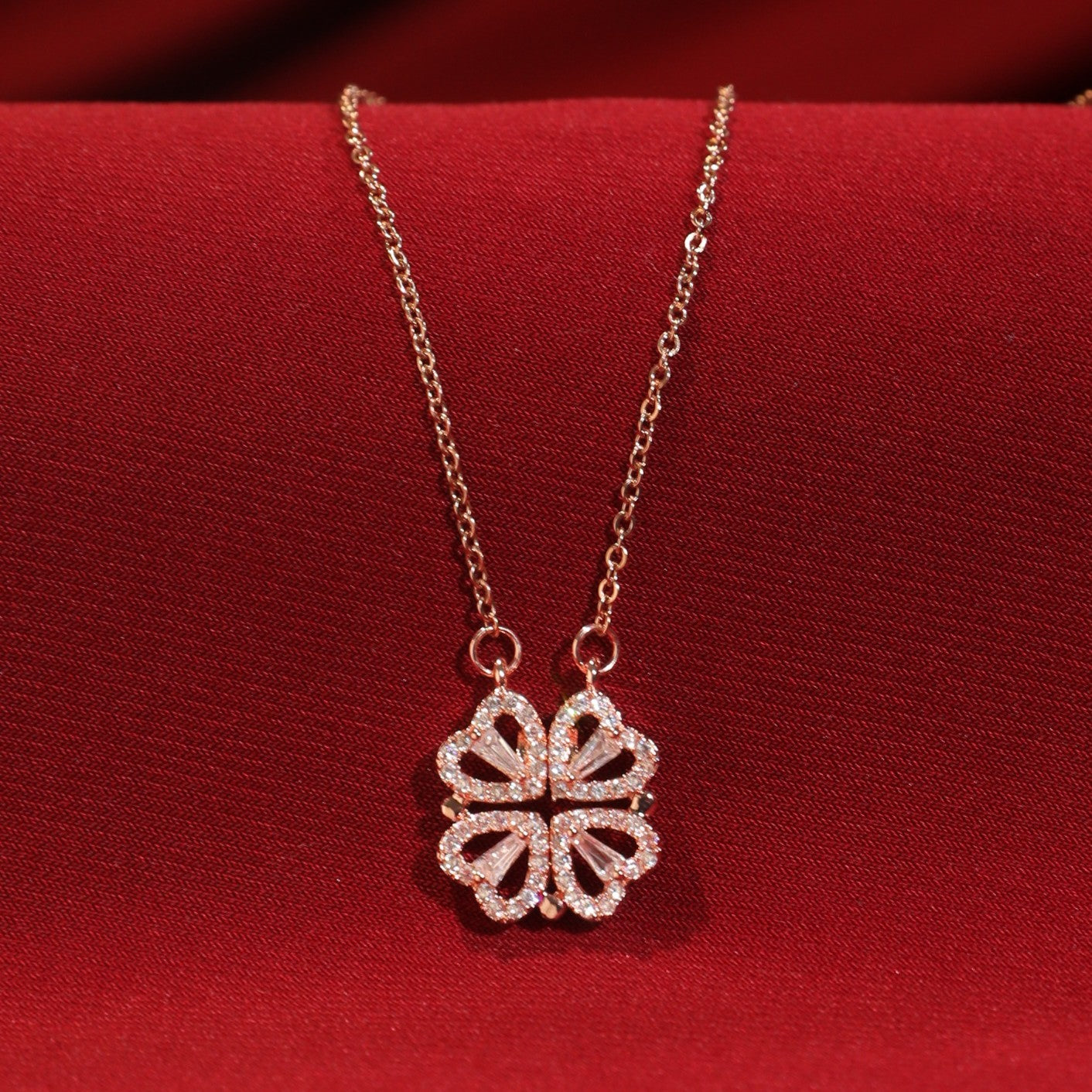 - Hyacinth 4-pcs Zircon Heart Magnetic Clover Necklace - Rose Gold (In Exceptional and Extraordinary Only).