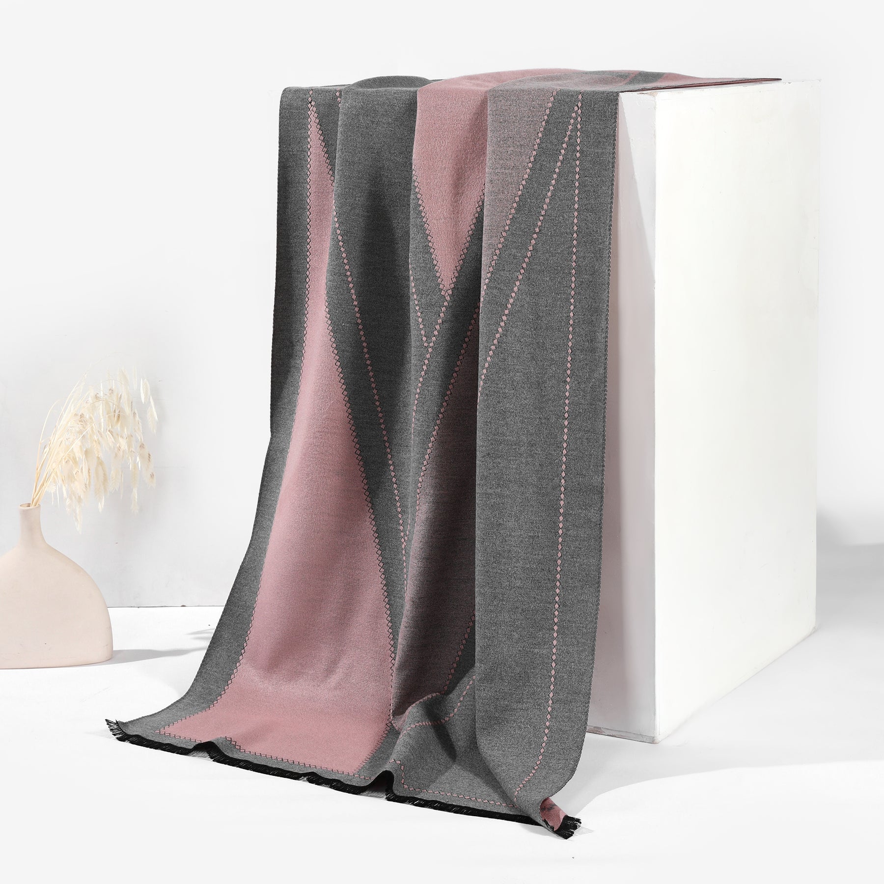 The MonarchWave Luxe Knit Shawl is where timeless sophistication meets everyday comfort. Crafted in elegant tones of Grey and pink, its flowing wave pattern creates a refined, modern aesthetic that instantly elevates any outfit. Made from ultra-soft, breathable knit fabric, this shawl offers warmth without weight — perfect for cozy evenings, travel, or adding a polished layer to your workwear. Drape it, wrap it, or wear it open — its versatile design complements both casual chic and classic elegance with effortless grace.- ColorPink,Grey