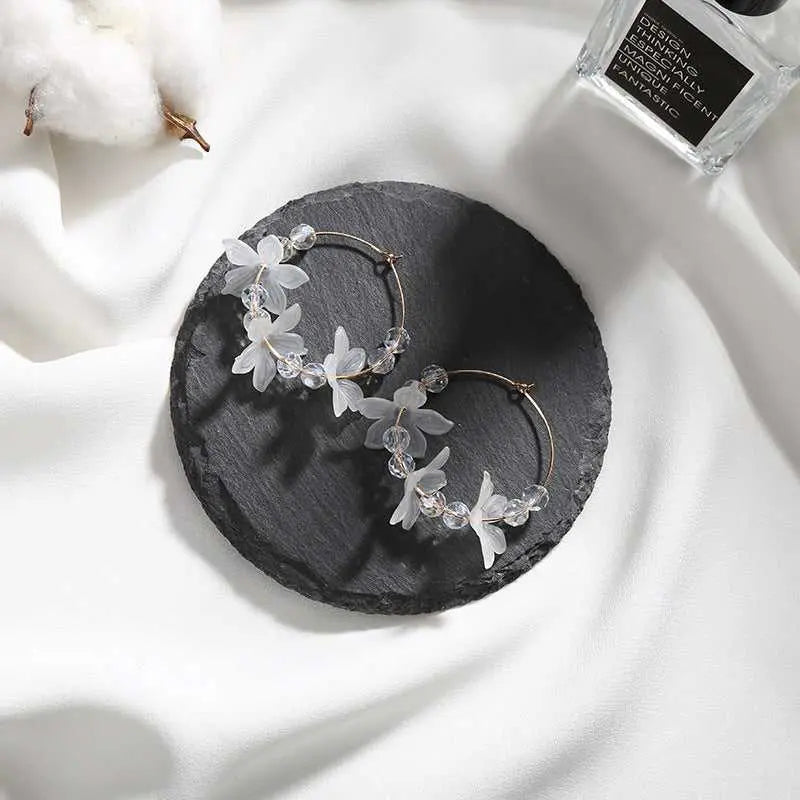 White Acrylic Periwinkle Multiple Flower Hoop Earrings
