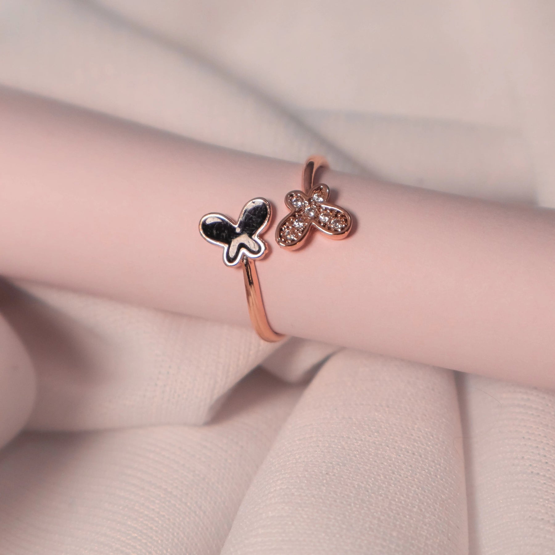 The Zirconia butterfly ring is a unique style that you won't find anywhere else. This ring is made of a shine finish. This ring is perfect for those who are looking for a unique style with a high shine finish.